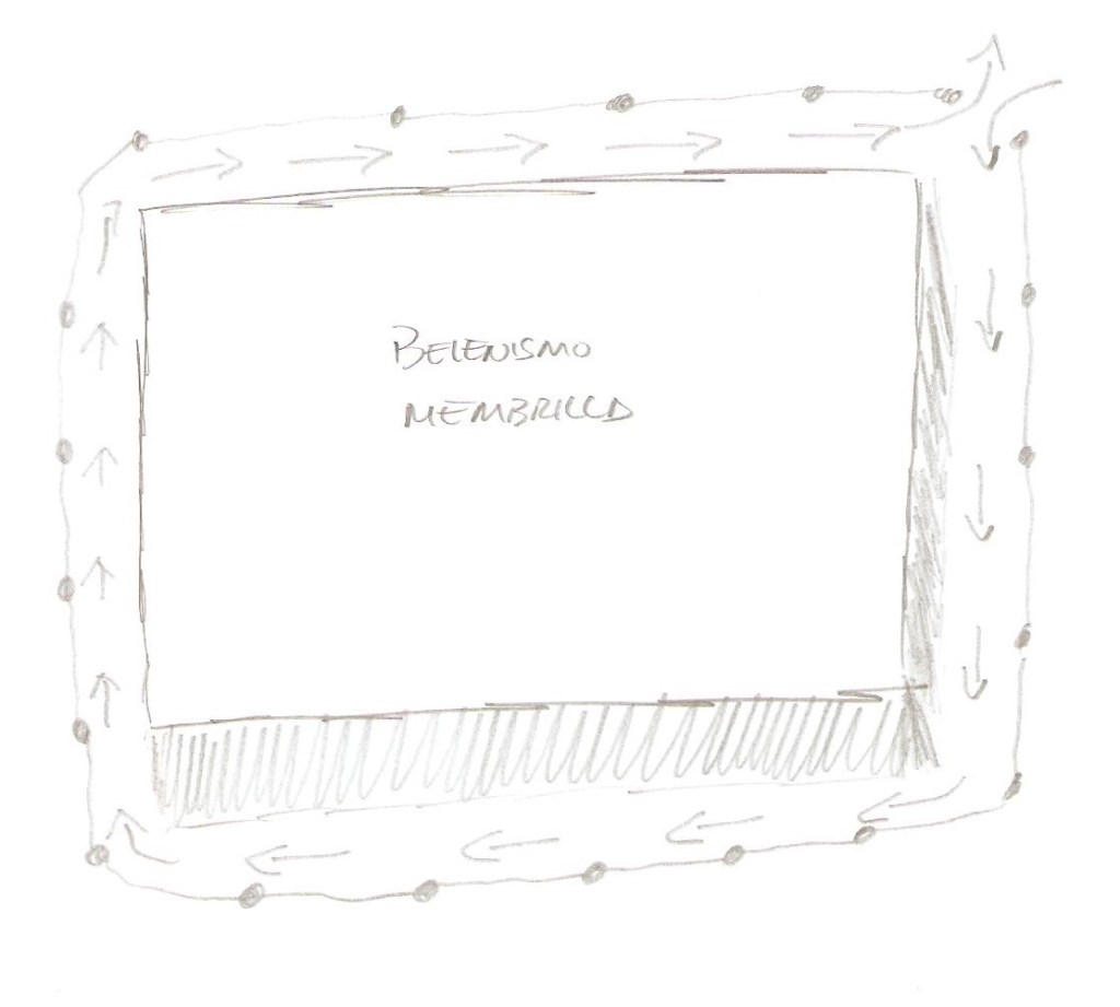 Planta central. Se necesita un espacio grande y tiene la ventaja de que se puede ver el belén por las cuatro caras. Los espectadores van rodeando el belén. Este es el espacio ideal para cuando se espera recibir muchas visitas. Pero tiene el inconveniente de que no puede colocarse el celaje al estar retirado de la pared.