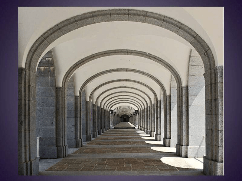 Los arcos a medida que se alejan se van haciendo más pequeños. Cualquier figura que pongamos, se irá adaptando al lugar que ocupe en función de la lejanía.