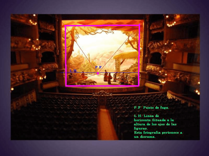 El punto de fuga tanto en un diorama como en un belén se sitúan al fondo del diorama o del belén.